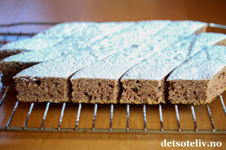 Stek kaken på nederste rille i ovnen ved 200°C i 30 minutter. Avkjøl i formen.
