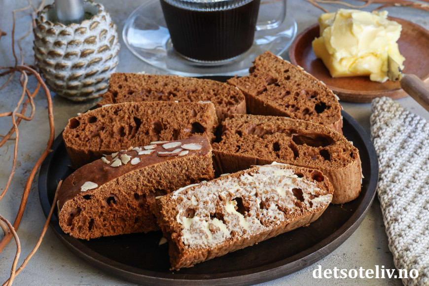 Skjær kaken i skiver og server nybakt med litt smør på.