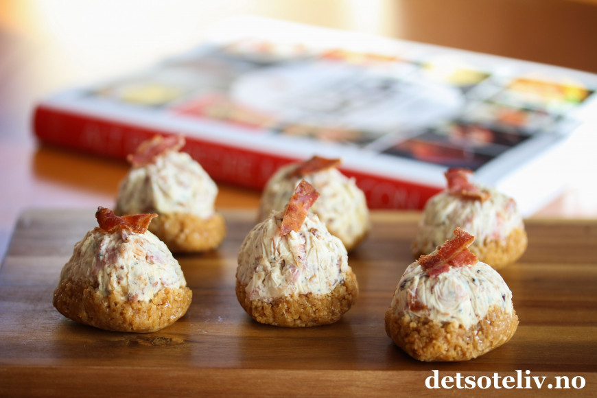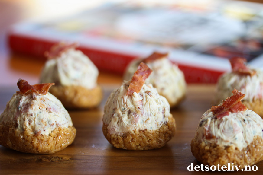Jeg har her testet ut oppskriften på Baconkaker med blåmuggost. Yummy!