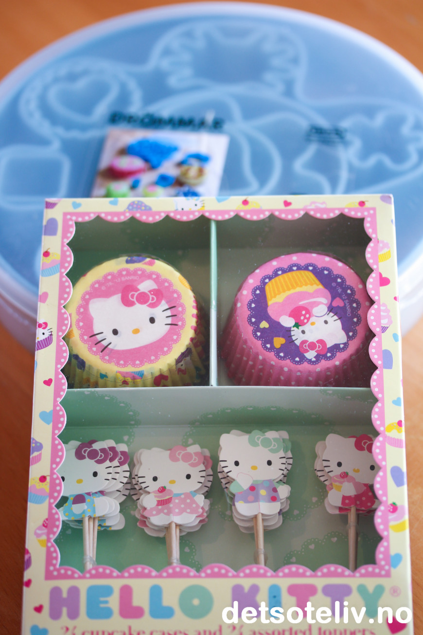 Vesla her i hus, snakket om Hello titti (som hun sier, 4 år ) hele tiden, så dette hadde gitt henne masse masse inspirasjon til å være med og bake... Hun er ikke den som synes det er så moro megn tenker med rette utstyret så hadde det nok blitt andre boller :)
