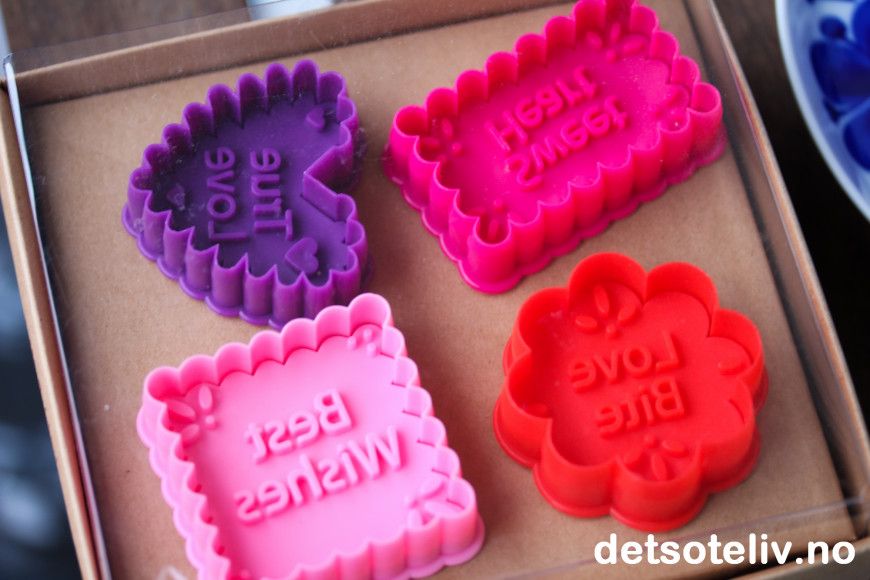 I den andre luken i Det søte livs julekalender finner dere en pakke med 4 supersøte utstikkere med stempelfunksjon. Disse kan du bruke til å stikke ut vaniljekjeks som du stempler en søt hilsen i.