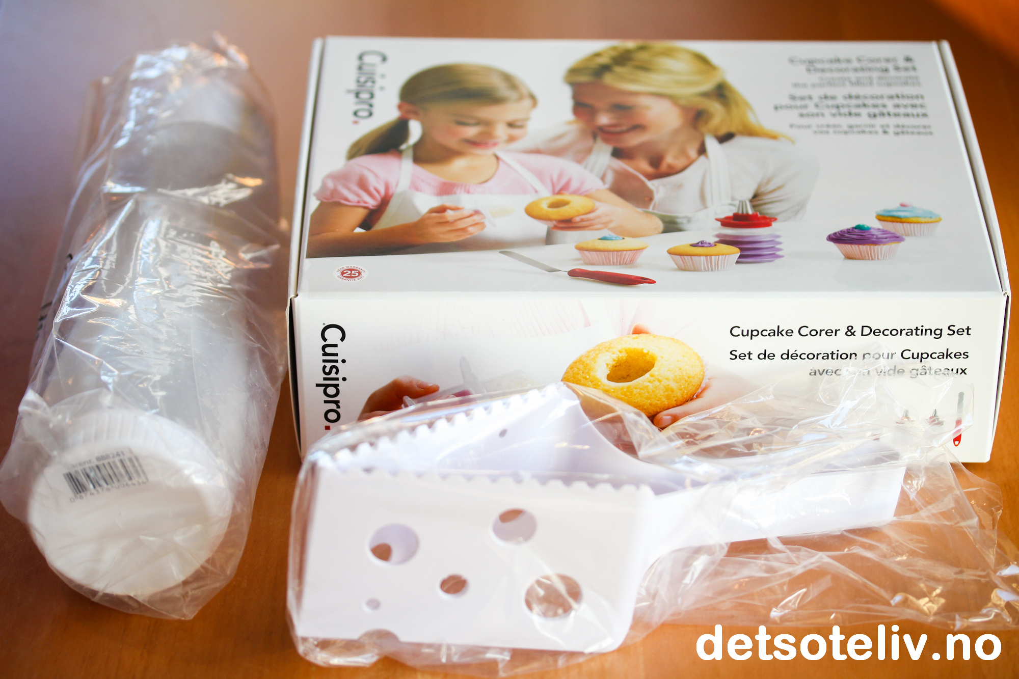I kalendergaven finner du en eske med kjempefint utstyr til å lage artige cupcakes sammen med barn.