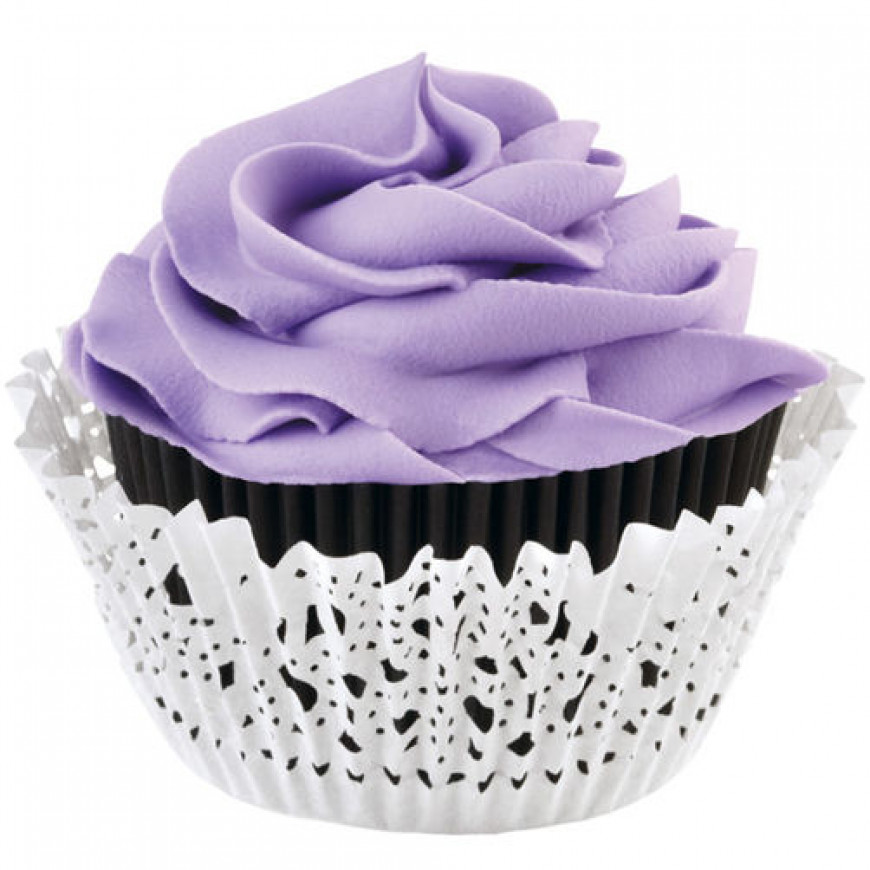 6. Cupcake papirform standard Doilie,sort m/hvit, 48 stk., Wilton