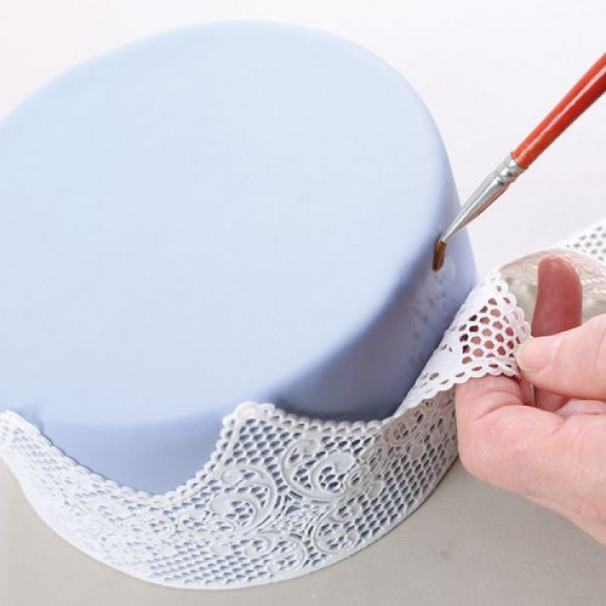 Tøft å legge slike mørke blonder på en kake dekket med hvit fondant (som også følger med i giveawayen, se nedenfor)!
