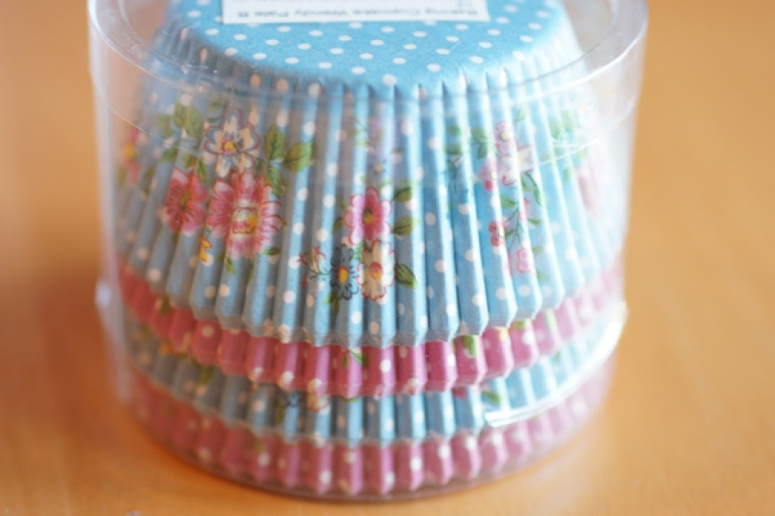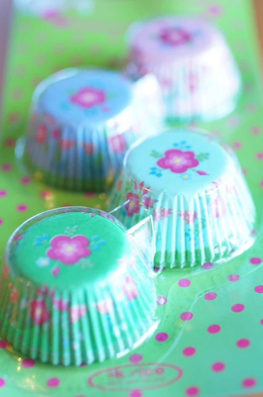 Så sender jeg med en pakke med nydelige og sommerlige cupcakeformer i rosa og blomstrende lyseblått!