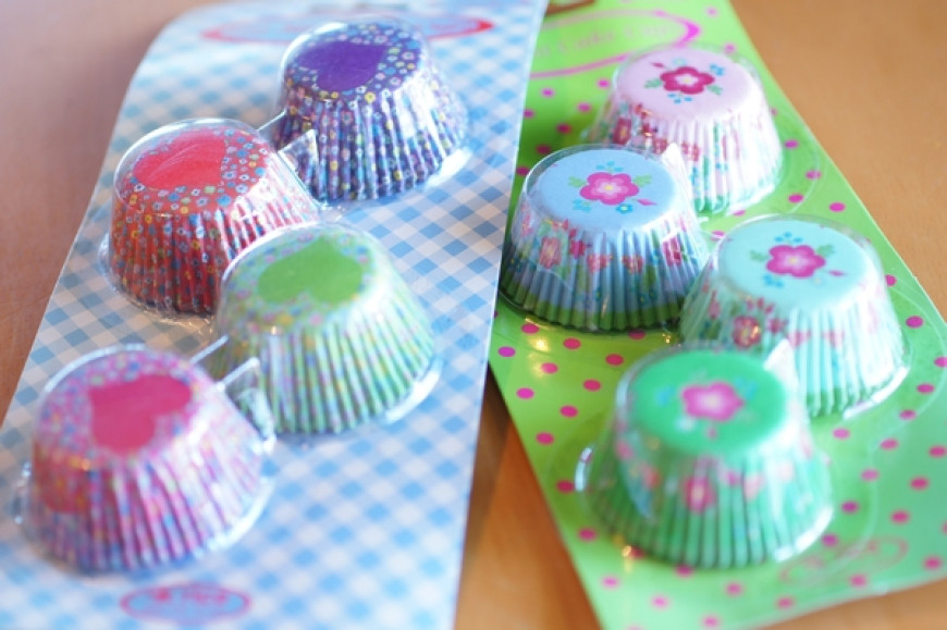 Her ser dere begge pakkene med mini-cupcakesformer ♥