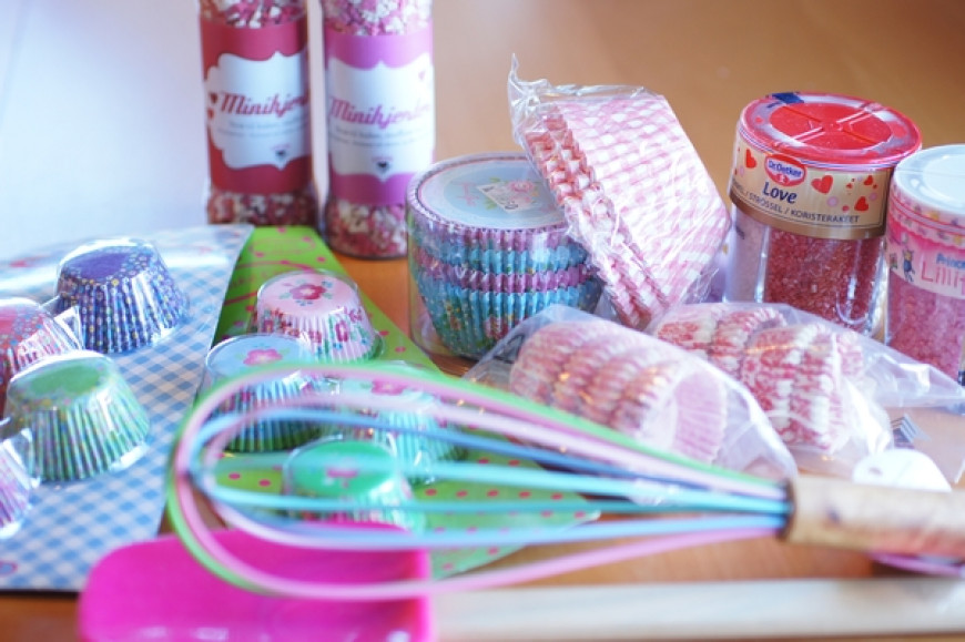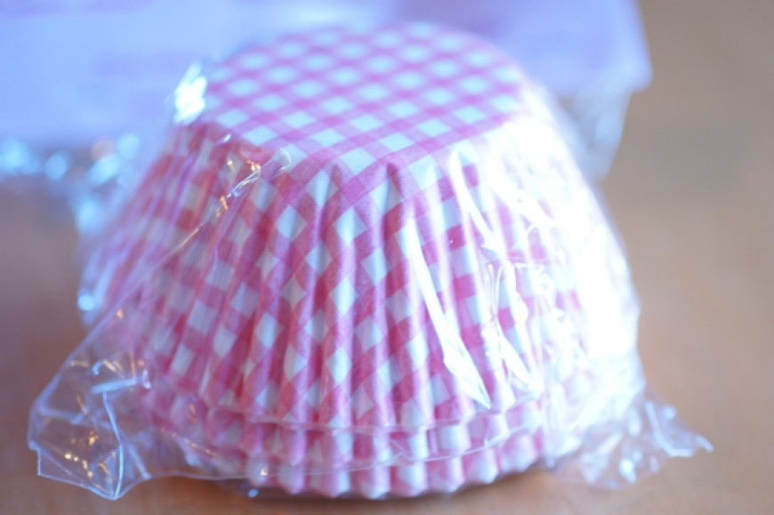 Og så en pakke kjøkkenrutede cupcakeformer i vakker rosafarge.