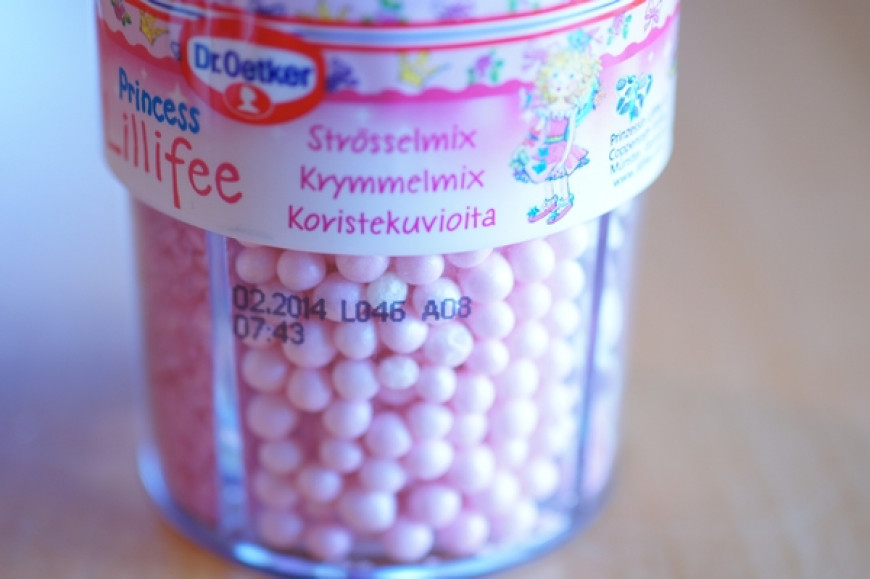 Og til sist en pakke assortert kakestrøssel i rosa og hvitt. Også dette prinsessestrøsselet kommer fra Dr Oetker.