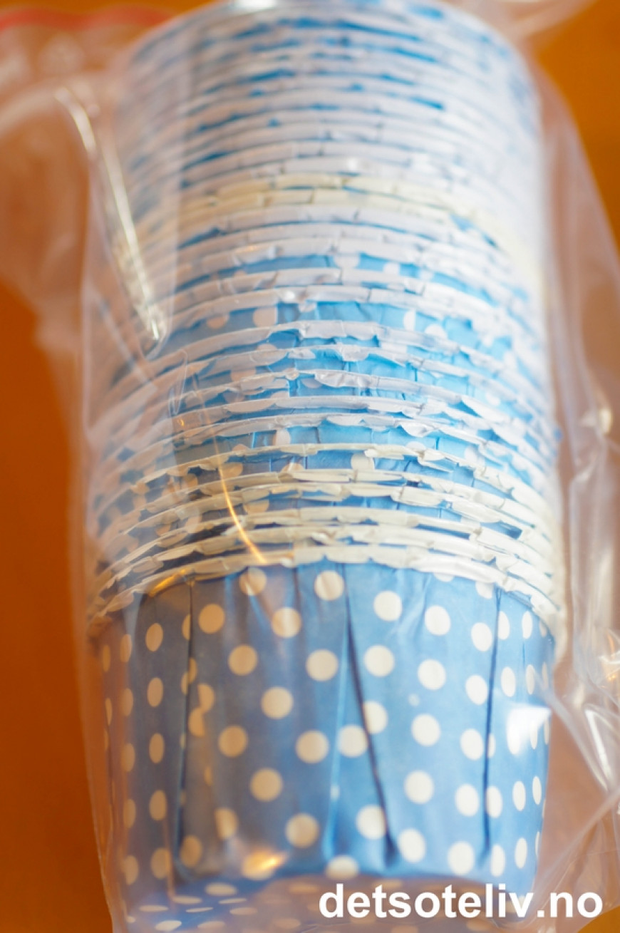 2. Blå cupcakeformer som holder fasongen under stekingen