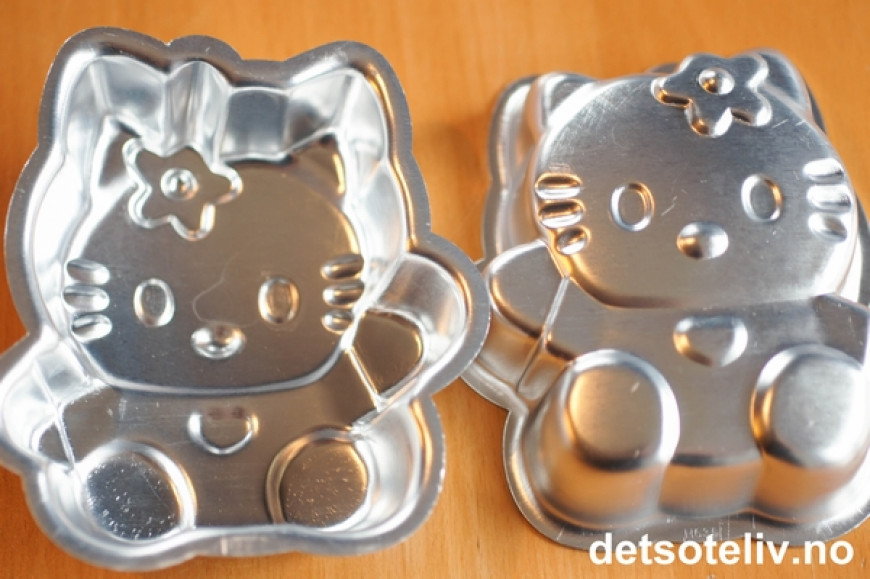 Dette er supersøte former til å lage små porsjonskaker med Hello Kitty fasong!