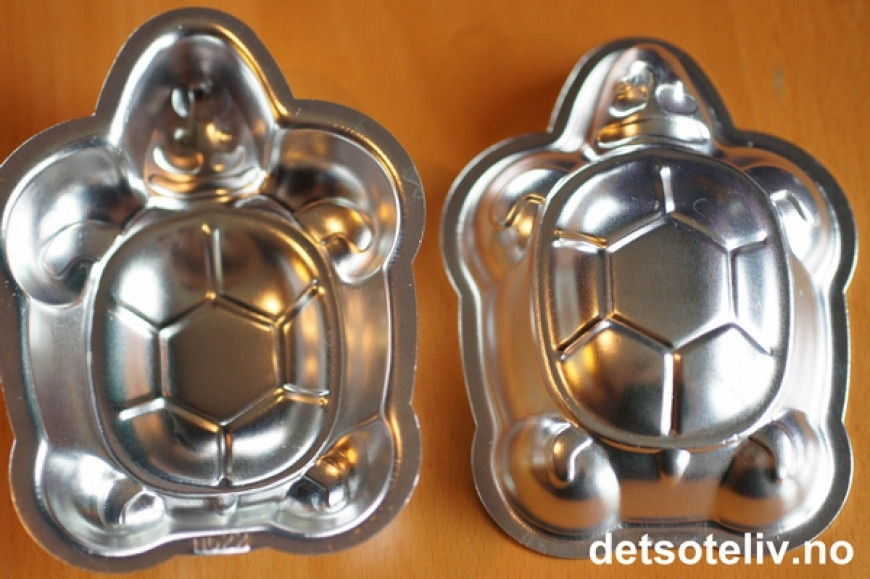 I samme stil har du her 2 stk skilpaddeformer. Hva med å lage 2 stk stilige sjokoladekakeskilpadder