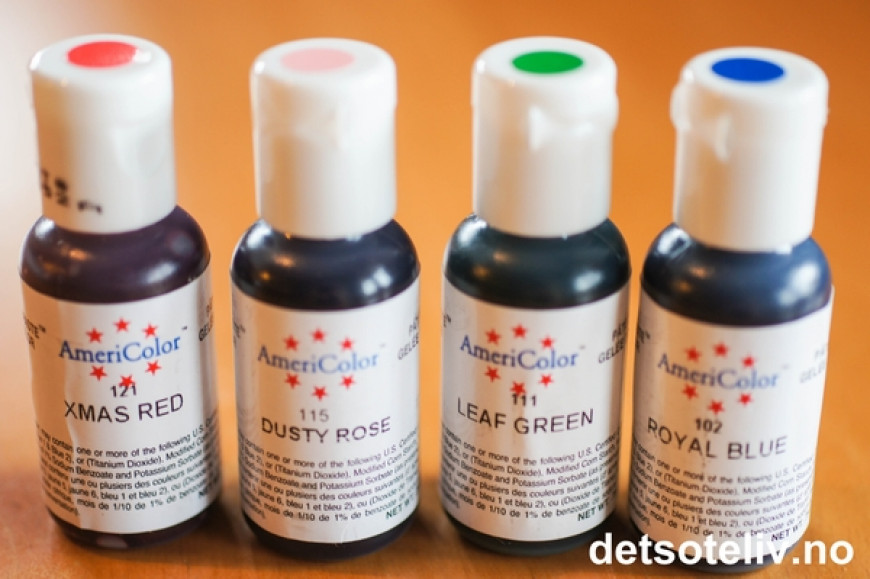 Ikke mindre enn 4 stk konditorfarger av det populære merket Americolor følger med i gaveesken! Dette er helt supre konditorfarger som jeg bruker mye!