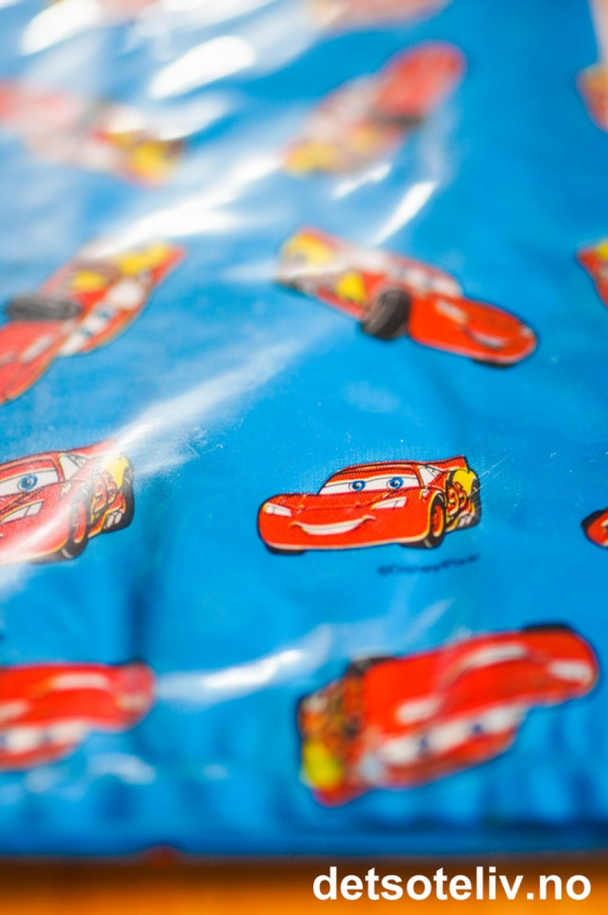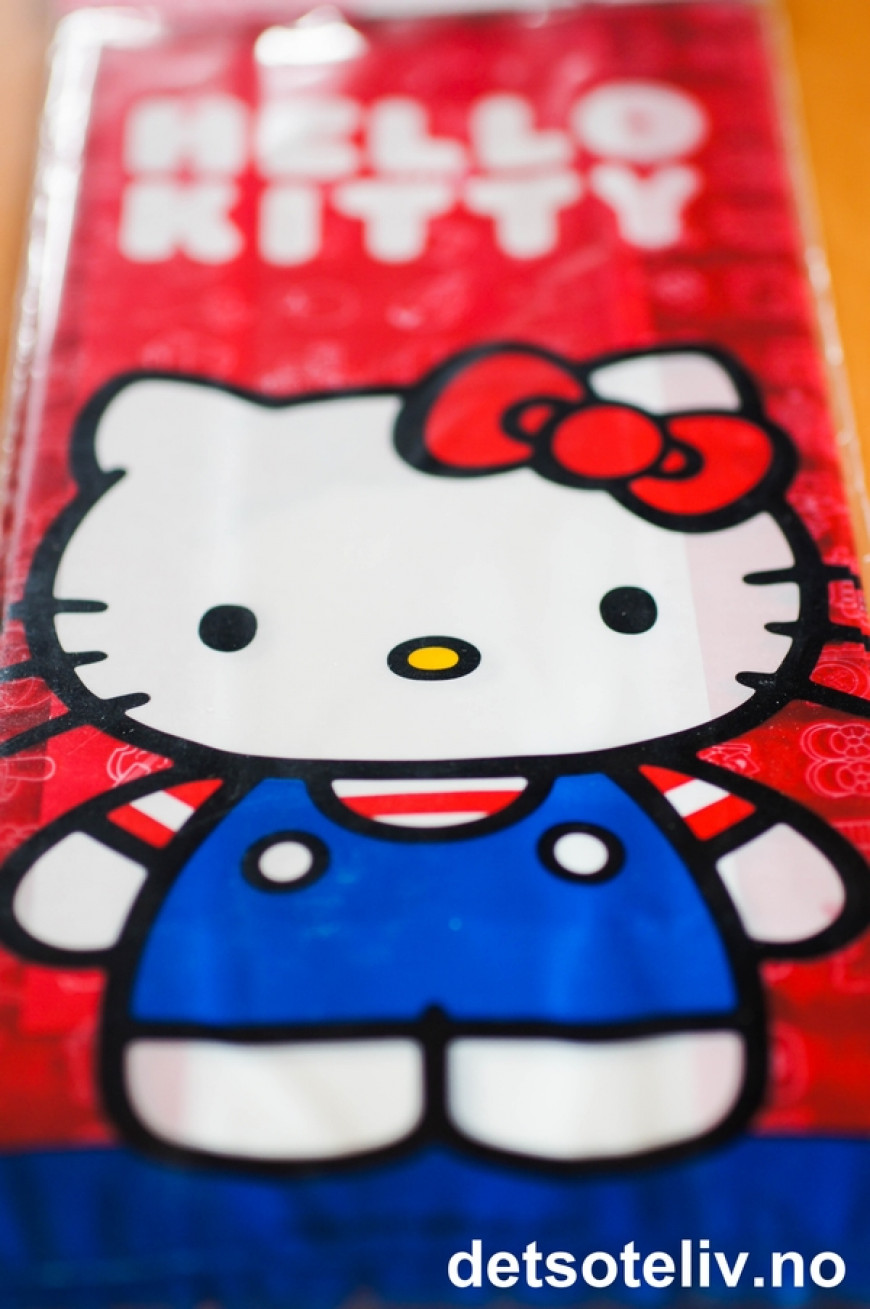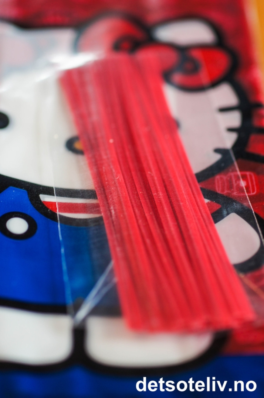 Både Hello Kitty-posene og posene med biler festes med strips som følger med i posen. Praktisk!