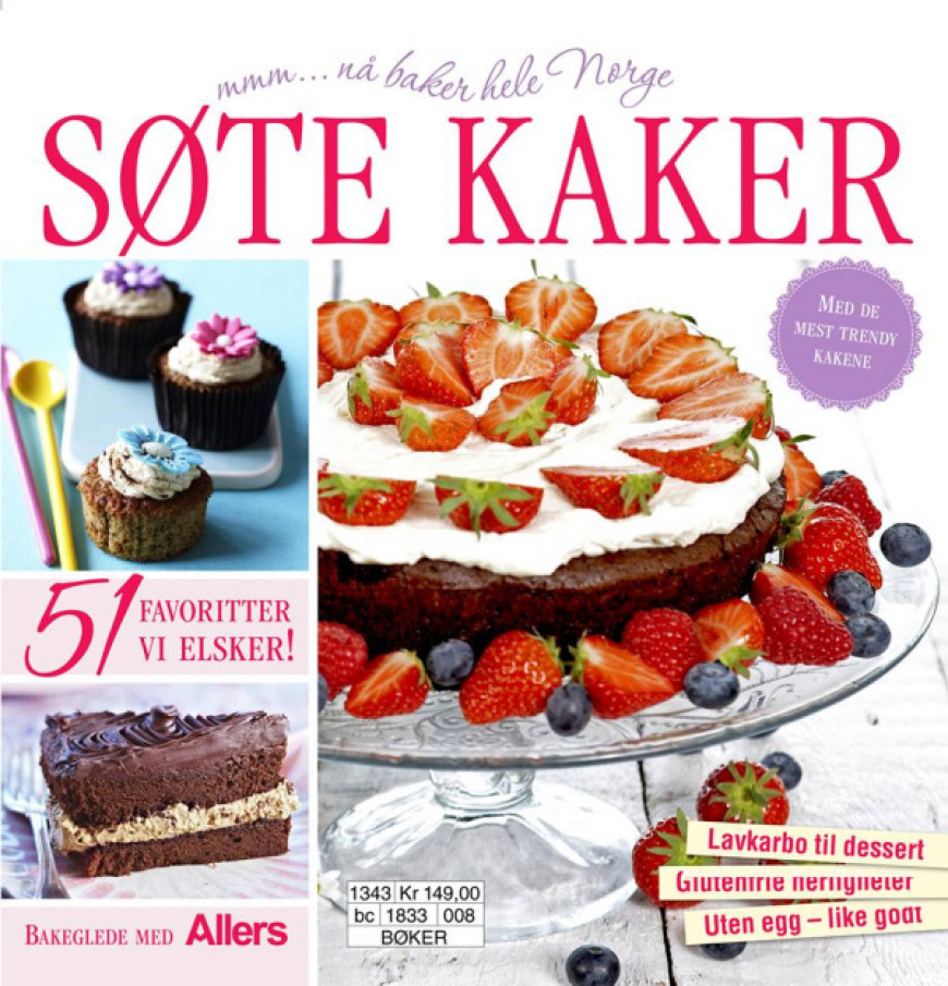 Denne gangen kan 3 heldige personer få denne nye boken fra Allers Forlag med Søte Kaker!