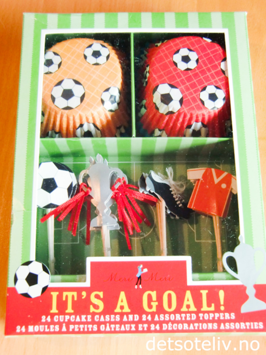 Her er cupcakesformer med pyntepinner beregnet på alle barn som spiller fotball (eller kanskje du har en fotballgal mann;-))