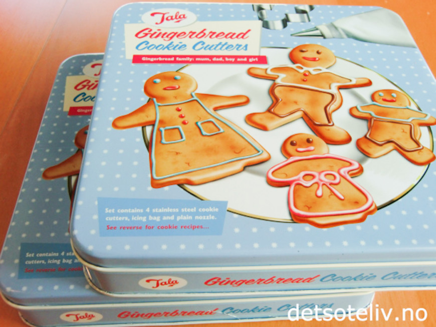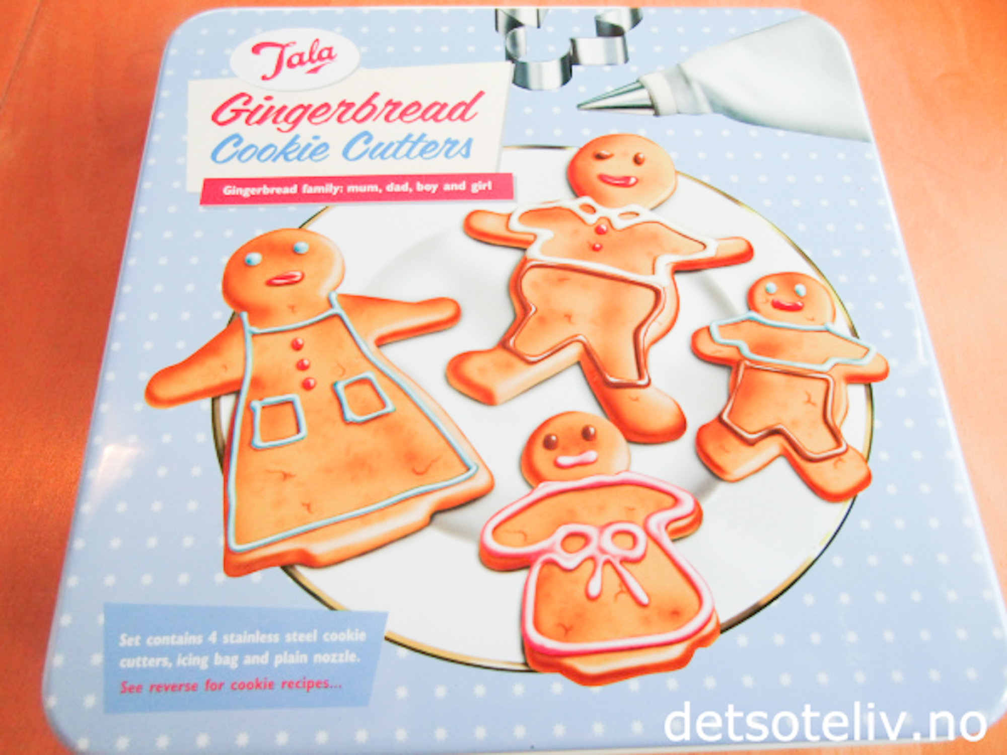 Gavene består for det første av denne supernydelige boksen med pepperkakeutstikkere for en hel pepperkakefamilie.