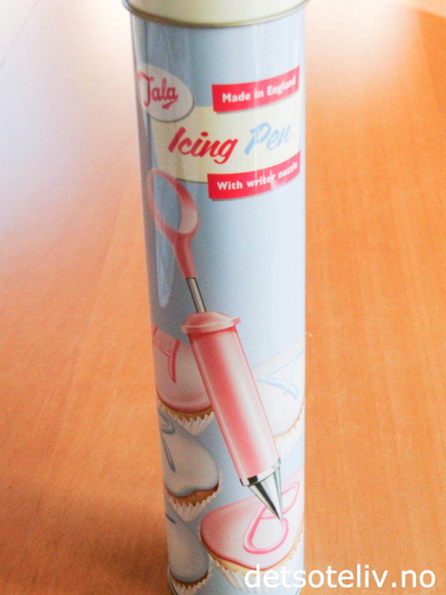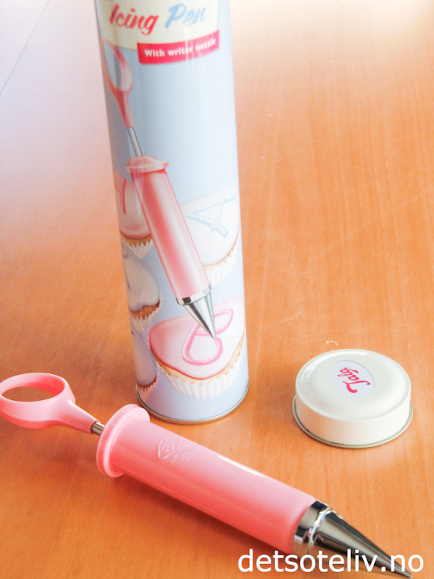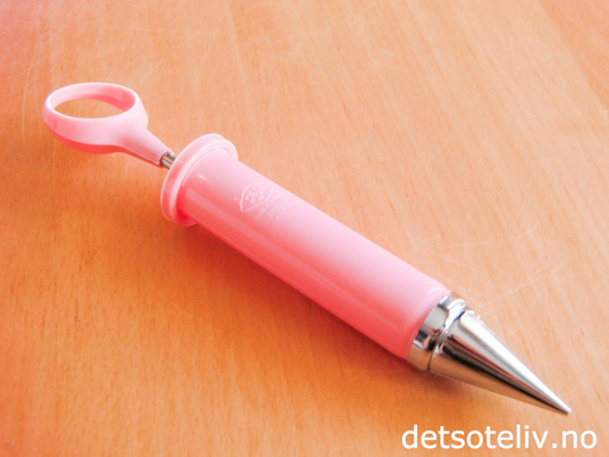 Inni boksen følger det også med en kakesprøyte med liten tut som er perfekt til å pynte pepperkakene med!