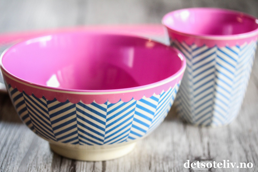 Giveawayen består av 4 stk skåler og 4 stk kopper med nydelige farger og i et hendig melamin-materiale.