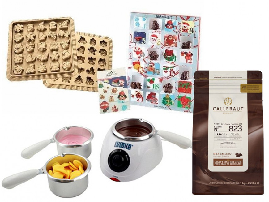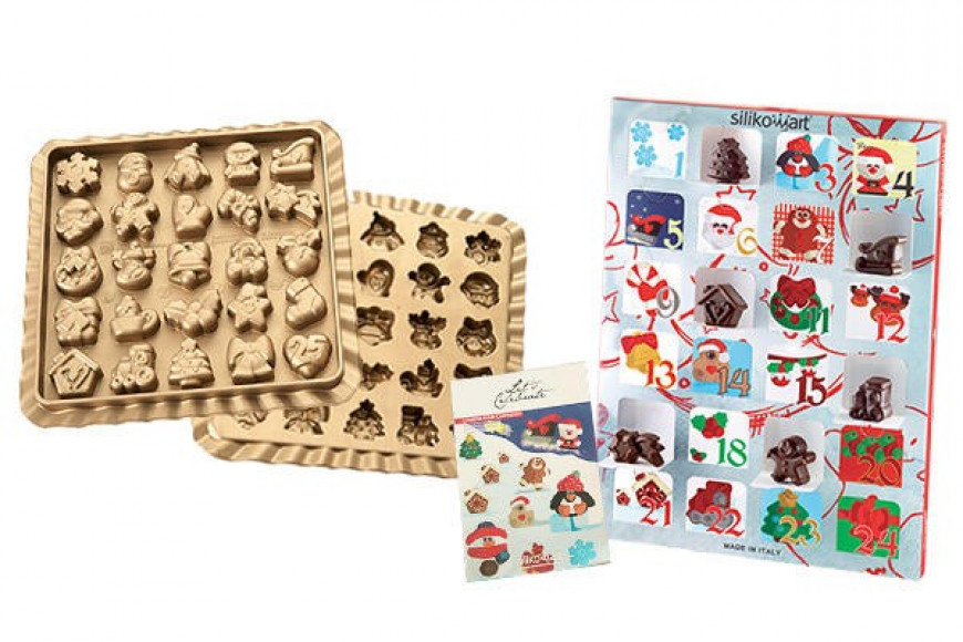 Så trenger du former til å fylle i den smeltede sjokoladen og en papirkalender.