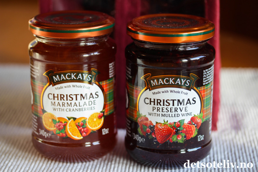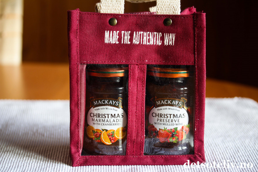 I tillegg følger det med en gavepakning med julemarmeladene: Christmas Marmelade with Cranberries og Christmas Preserve with Mulled Wine.