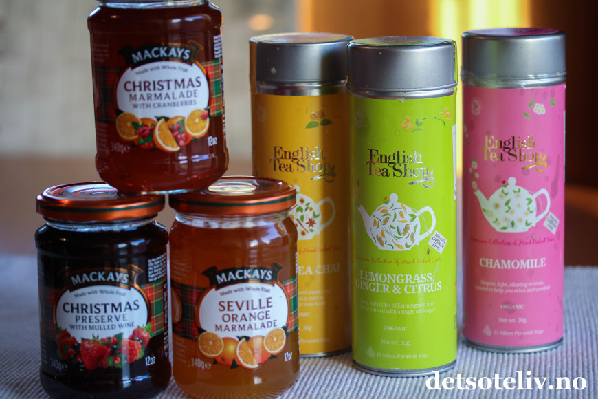 I tillegg til marmeladen følger det med i gaven et par kvalitetsteer fra English Tea Shop. Dette er økologiske teer som produseres på Sri Lanka i tråd med eldgamle tradisjoner (Fairtrade).