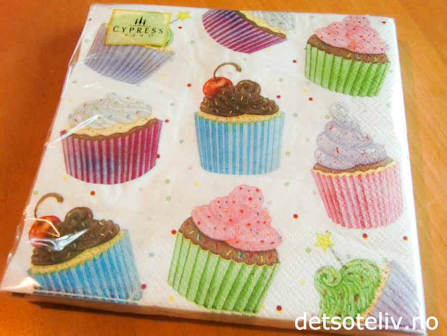 Så gir jeg vekk en pakke med nydelige cupcakeservietter