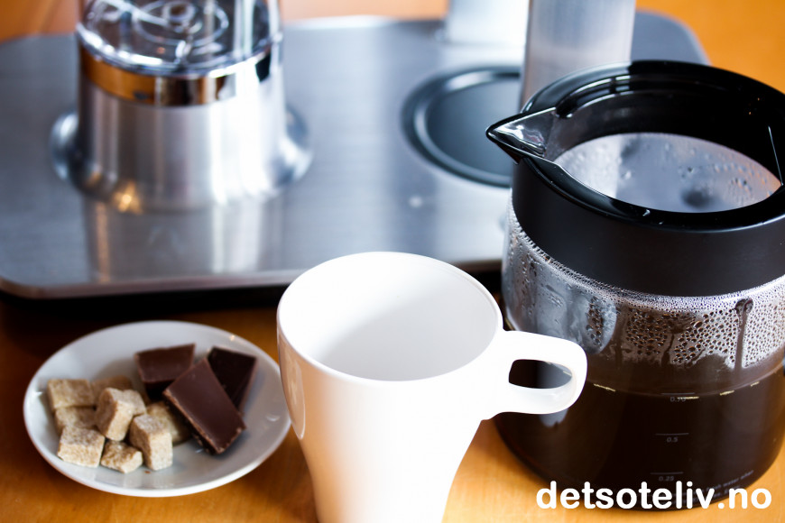 Det lukter så godt på kjøkkenet av nytraktet kaffe!