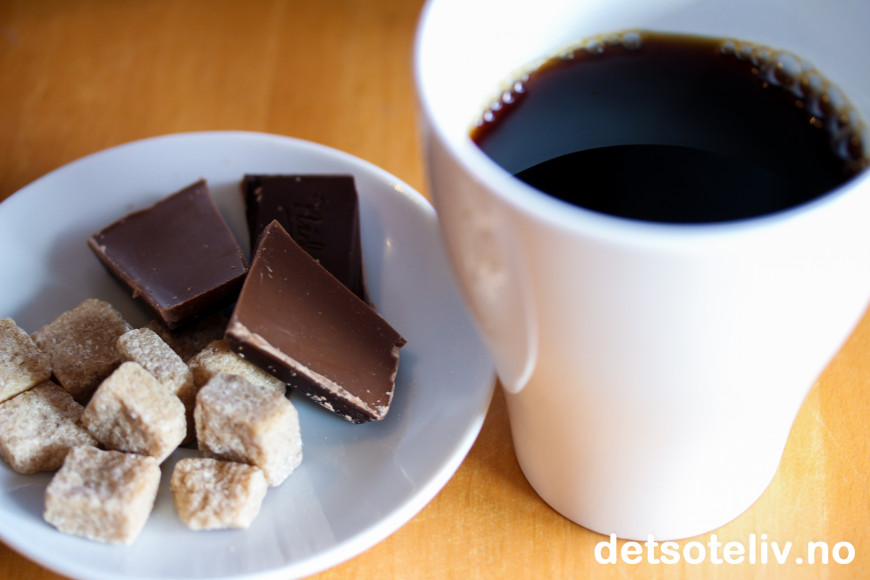 Deilig kaffe med litt sjokolade til! Eller kake da, som også godt går an...