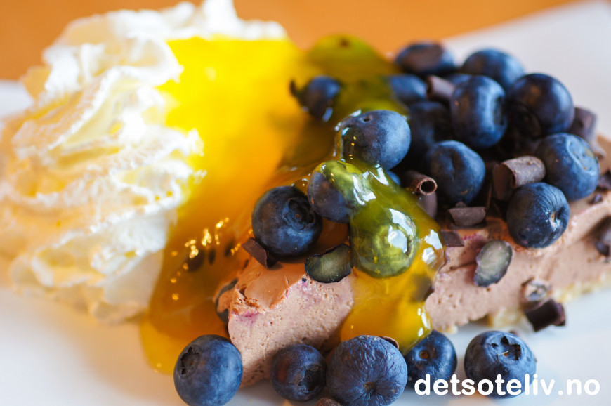 Sjokoladeostekake med blåbær (og Passionfruit Glaze)