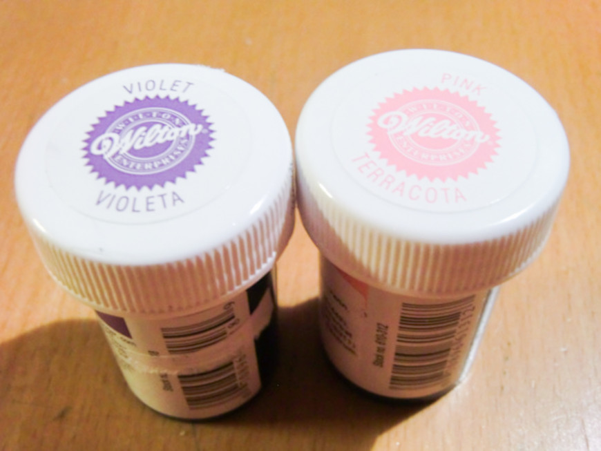 Jeg deler derfor også bort 2 stk pastafarger fra Wilton i lilla og rosa.