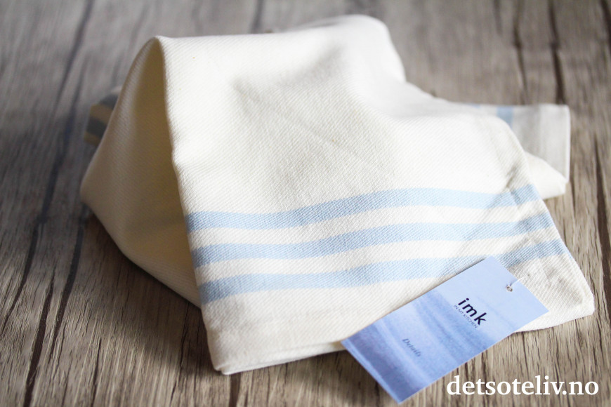 4. Og i tillegg følger det med et koselig kjøkkenhånkle i hvitt og lyseblått.