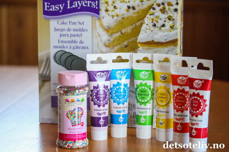 Du har nå muligheten til å vinne en produktpakke fra den flotte nettbutikken Slikkepott.no, som inneholder alt du trenger for å lykkes med en flott Regnbuekake!