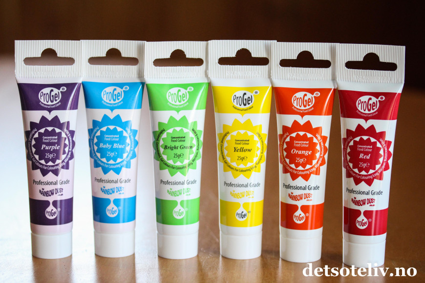 2. Konsentrert pastafarge i de 7 regnbuefargene