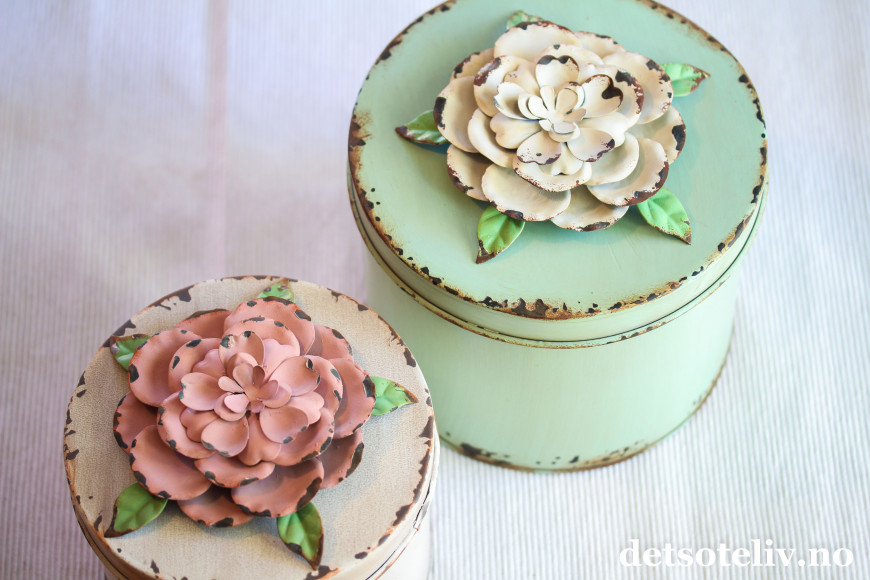 I tillegg følger det med et sett med 2 stk vakre vintage oppbevaringsbokser.