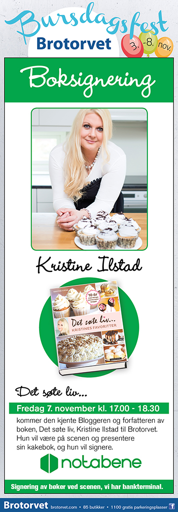 Boksigneringen skjer i anledning bursdagsfesten til Brotorvet kjøpesenter, og hele senteret vil være preget av fest og moro og gode tilbud! Senteret ligger i Stathelle i Bamble kommune i Telemark og inneholder over 85 butikker og har 1100 gratis parkeringsplasser. Du kan lese mer om senteret og alle butikkene HER. Det er Notabene Brotorvet som har invitert meg, og jeg GLEDER MEG til å komme på besøk!
