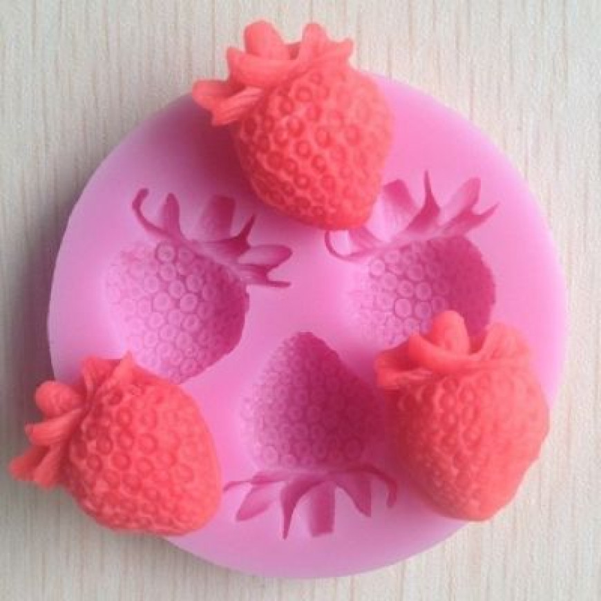 Dette er en kraftig silikonform som kan brukes for å lage tre herlige jordbær. Ideel å bruke til sjokolade, drops, fondant, marsipan, såpe og andre masser.