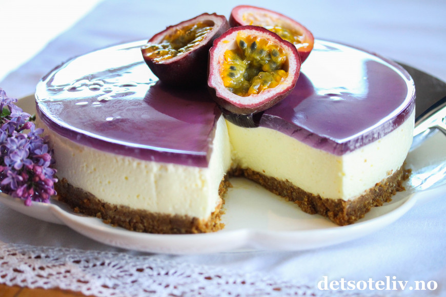 (Oppskriften på denne nydelige ostekaken med pasjonsfruktgelé kommer her på Det søte liv i morgen.)