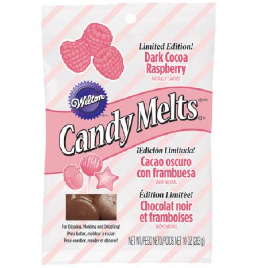 Så inneholder giveawayen en pakke med Candy Melts - som er små sjokoladepletter som er spesielt egnet til smelting. Disse finnes i mange farger og smaker, og denne her typen har som navnet tilsier smak av sjokolade og bringebær.