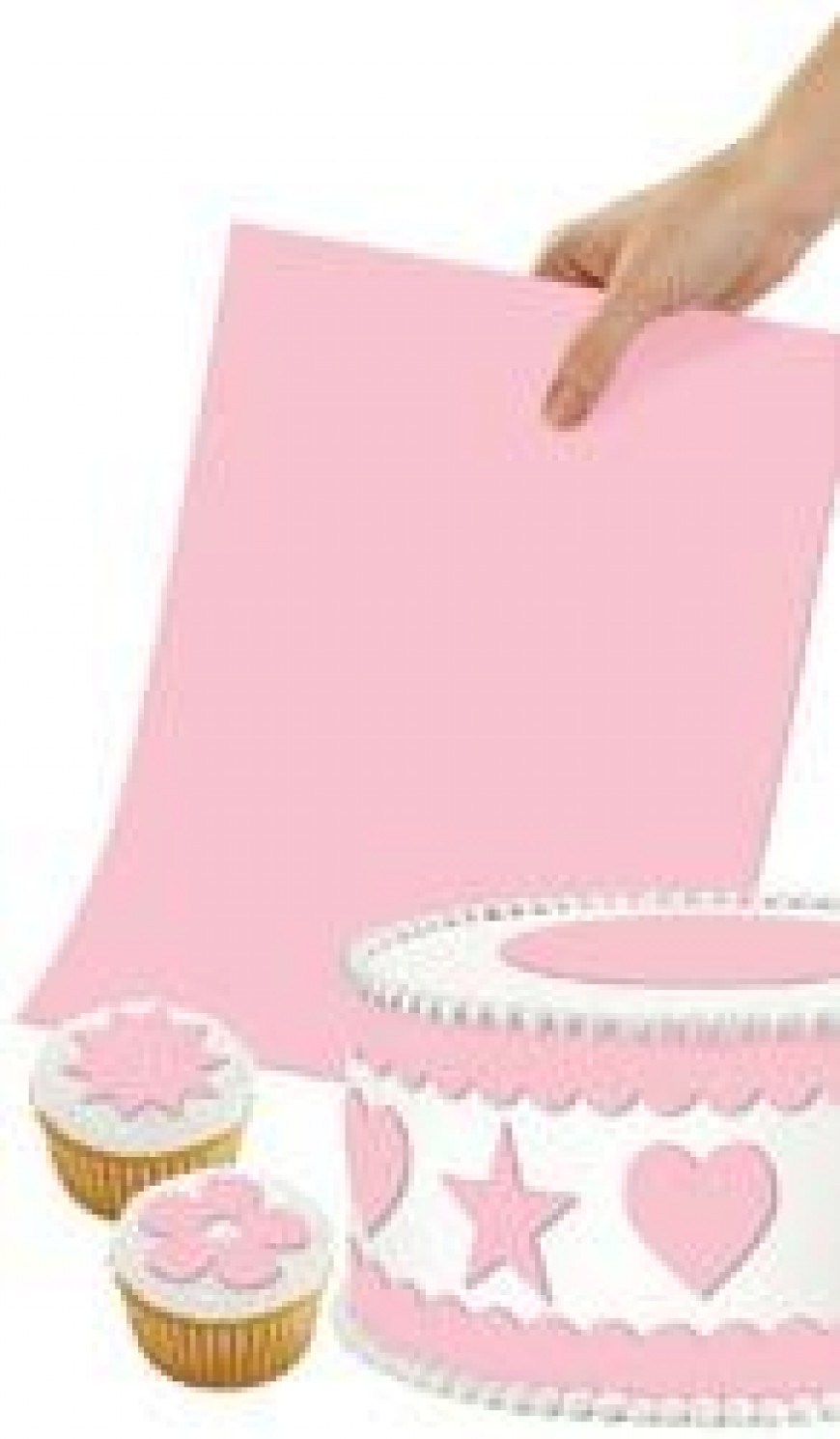 Dette er spiselig, rosa papir med svak vaniljesmak som kan klippes i, kuttes og brukes med utstikker.