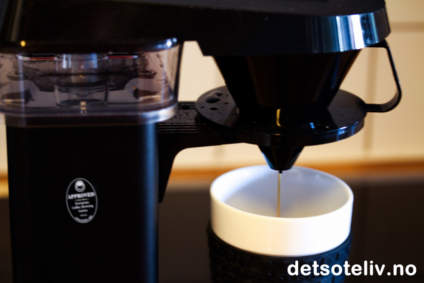 Her ligger altså alt til rette for at du trakter kaffen din på 4 minutter om morgenen mens du gjør ferdig morgenstellet, og så haster ut døren med din nytraktede kaffe i hånden.