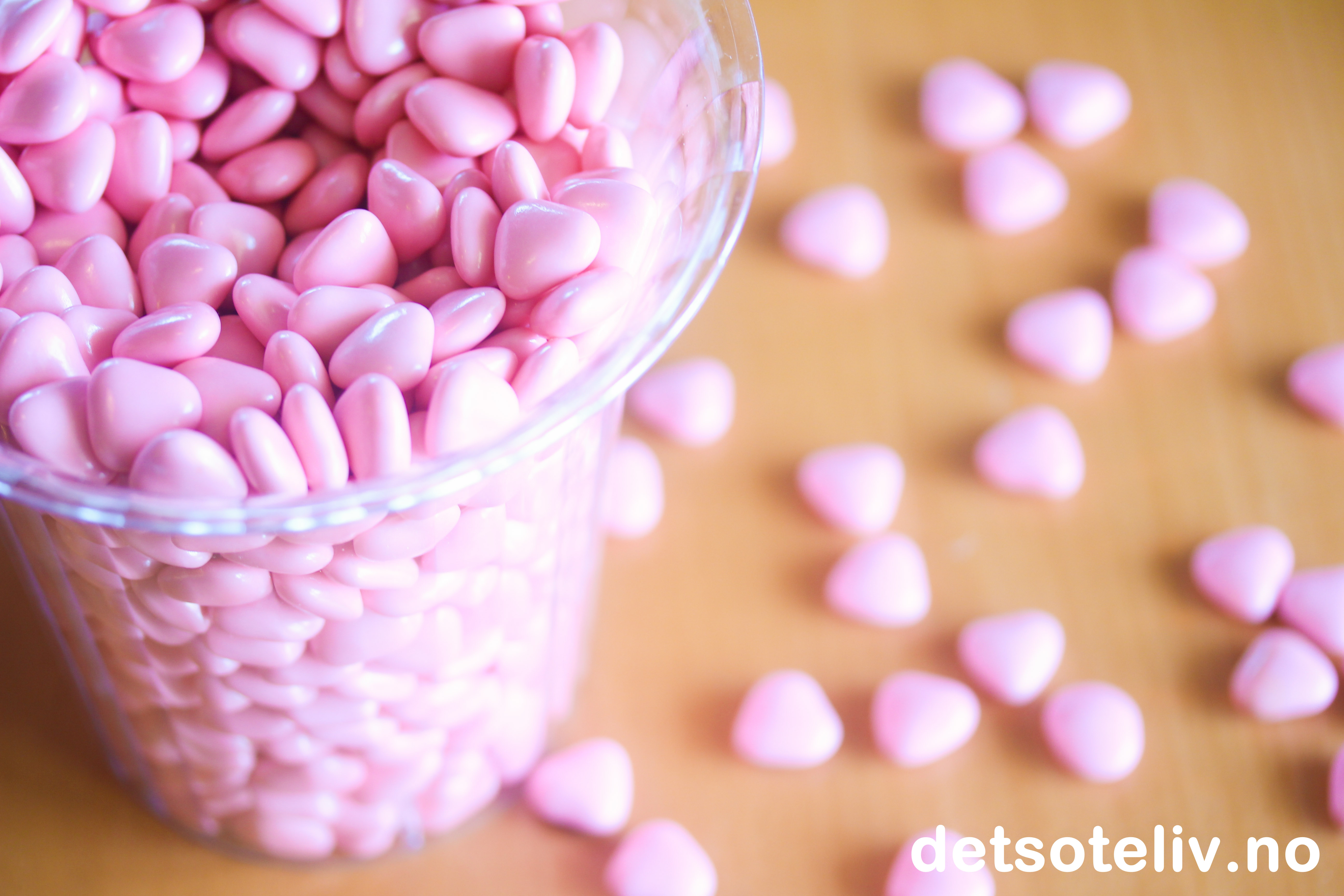 Jeg har i kveld trukket en vinner som får tilsendt både en stor pakke rosa sjokoladehjerter, 2 pakker valgfrie dessertskåler og en pakke hjerteformede, rosa marshmallows.