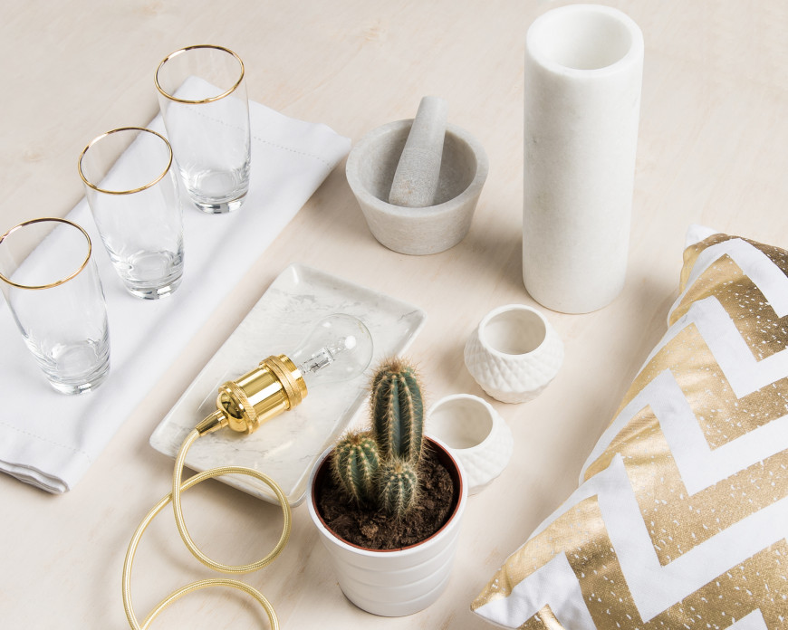 Giveawayen inneholder vakre kvalitetsartikler til kjøkken og hjem i hvitt og gull, og med utrolig stilrent design.