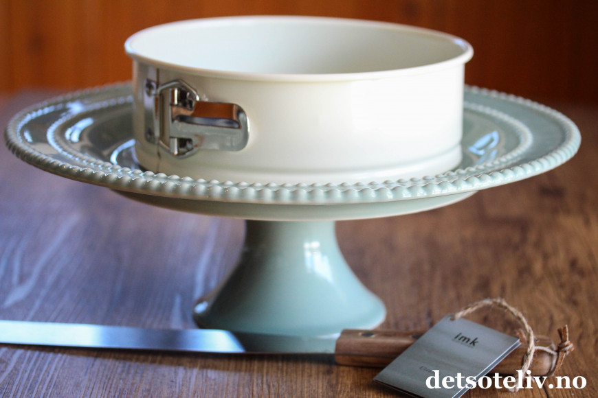 Pakken inneholder et stort og flott kakefat i dus grønnfarge, som passer perfekt til høstens kaker. I tillegg følger det med en kjempelekker hvit springform (21 cm i diameter), og en palettkniv. Alt i super kvalitet!