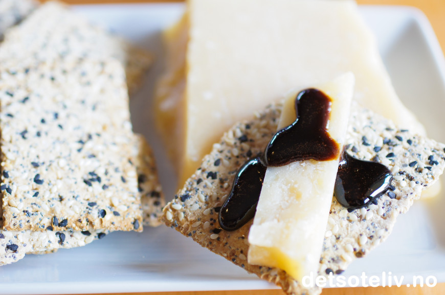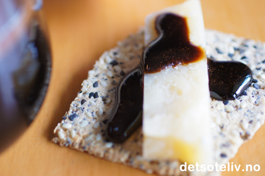 ♥ Server osten sammen med noen gode kjeks og ha en teskje med redusert balsamico på toppen av osten.