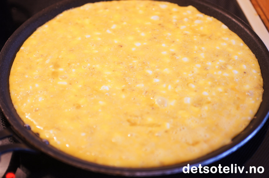 ♥ Proteinpannekaken må steke en stund for å bli helt gjennomstekt. Pass derfor på at du ikke har for sterk varme.
