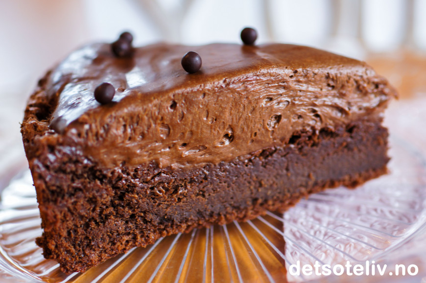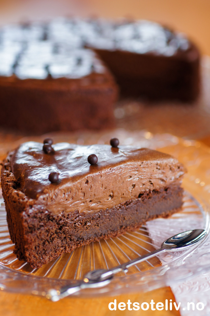 Se også oppskrift på kakene "Chocolatissimo" og "Himmelsk sjokolademoussekake", som begge er basert på samme konsept med delvis stekt og ustekt sjokolademousse som denne kaken her.
