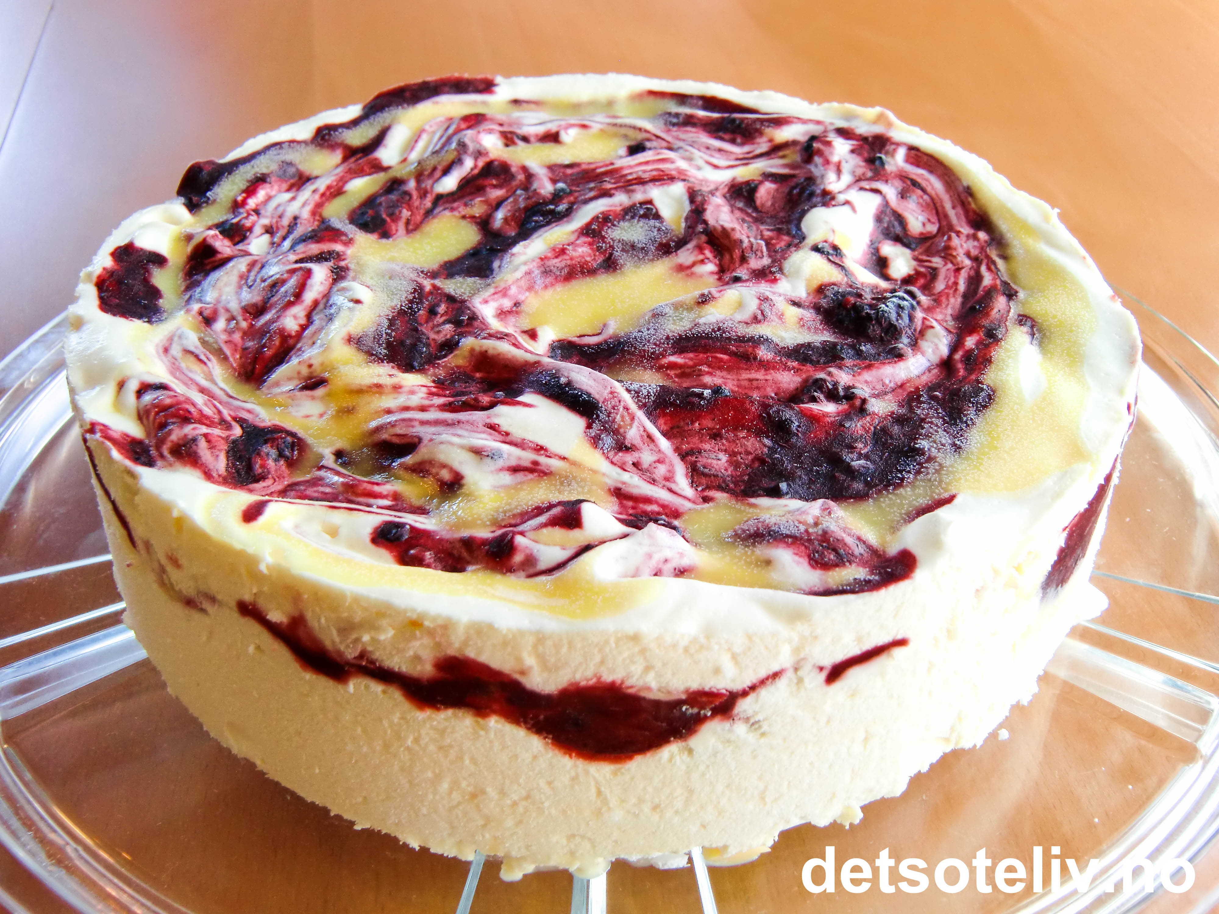 Denne er supergod!! Jeg lagde den med kjeksbunn (knuste kjeks blandet med smeltet smør) og med bjørnebærsyltetøy i stedet for frosne bær osv. Utrolig god kombinasjon med eggelikøren og bjørnebærene!