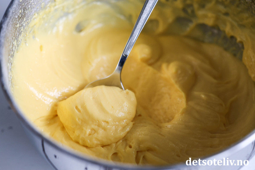 ♥ Merk imidlertid at vaniljekremen blir veldig tykk og stiv og nærmest fromasjaktig når du bruker 2 pk vaniljekrempulver. Dersom du ønsker en mer klassisk konsistens på vaniljekremen, holder det veldig fint med 1 pk vaniljekrempulver.