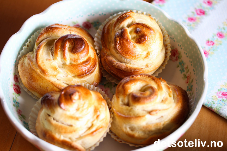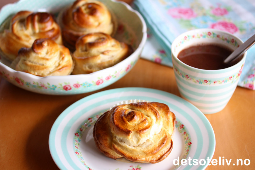♥ Du kan lage roseformede boller med hvilken som helst type gjærdeig og du kan variere med ulike typer fyll. Du skal få se Roseboller med kanelsukker snart her på Det søte liv. Rosebollene kan også fylles med syltetøy, sjokoladefyll, smørkrem osv...