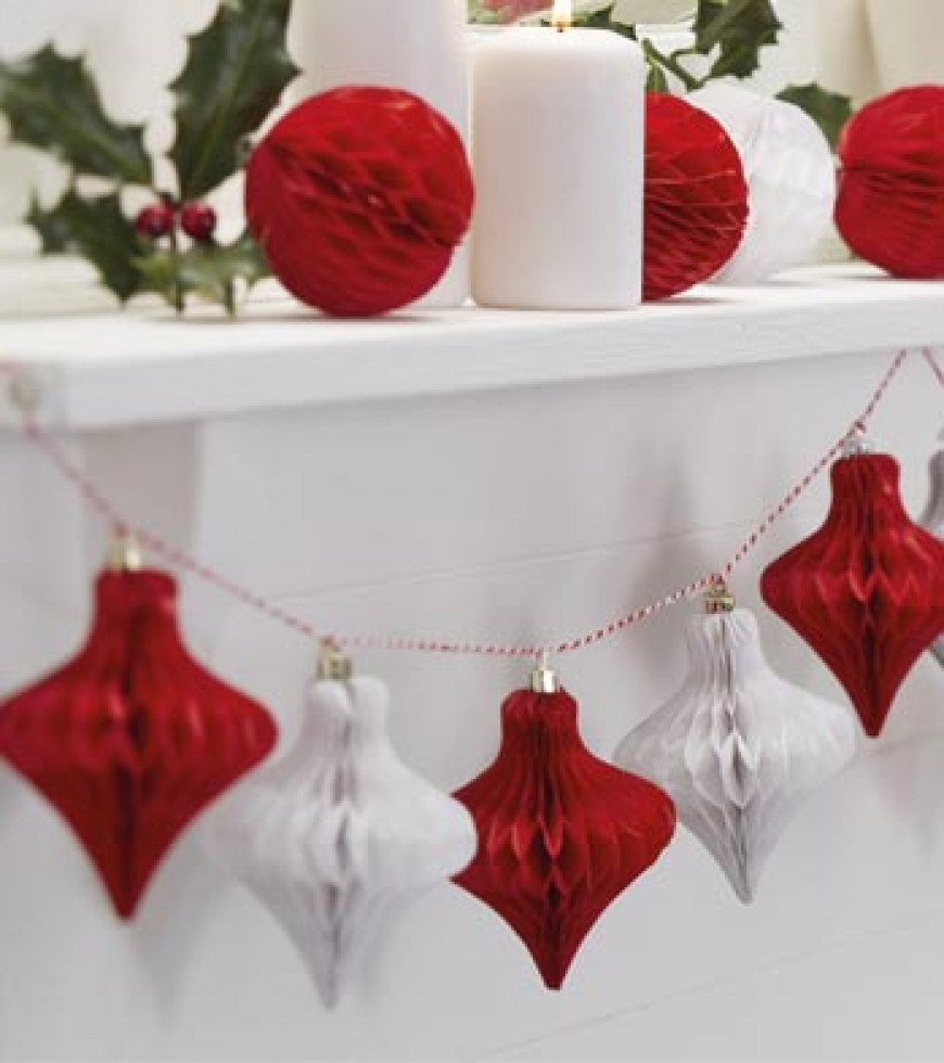 Jazz opp juletreet eller dekorere hjemmet ditt med denne festlenken av røde og hvite "Honeycomb baubles"!